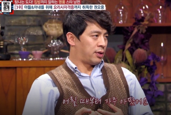 1971년 아들만 둘인 집안에서 막내아들로 태어난 권오중은 올해 나이 52세로 당시 딸을 키우고 싶었던 부모님이 막내는 딸을 낳자는 합의하에 임신했으나 아들 권오중이 태어나는 순간 아버지는 기분이 상해서 바로 술 마시러 나가버리고 어머니는 대성통곡을 했다고 합니다.